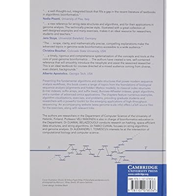 Review 'Genome-Scale Algorithm Design is a well-thought-out ... book that fills a gap in the recent literature ... [on algorithms] for bioinformatics. It offers a sound, clear, and rich overview of computer science methods for the challenge of today's biological sequence analysis. I [recommend] it to students as well as to researchers in the field.' Nadia Pisanti, University of Pisa'This book will be a new reference text for string data structures and algorithms, and their applications in computational molecular biology and genome analysis. The technically precise style, illustrated with a great collection of well-designed examples and many exercises makes it an ideal resource for researchers, students and teachers.' Jens Stoye, Universitt Bielefeld'I think the book is really great and could envision using it in courses in bioinformatics and data compression. The book's scope, clarity, and mathematically precise, compelling explanations make the advanced topics in genome-wide bioinformatics accessible to [a] wide audience.' Christina Boucher, Colorado State University'This book is a timely, rigorous and comprehensive systematization of the concepts and tools at the core of post-genome bioinformatics. By choosing to incorporate the principles of algorithms design most pertinent to the topic, the authors have created a rare, self-contained reference that will smoothly introduce the neophyte and assist the seasoned researcher as well as anybody who needs to understand these issues at a fundamental level. The organization of the material, the clarity of exposition and rigor of treatment make the book an ideal textbook for courses directed at a mixed audience coming from diverse, even distant backgrounds.' Alberto Apostolico, Georgia Institute of Technology'A very timely textbook covering many recently established techniques and applications at a level of rigor befitting a computer science audience.' Paul Medvedev, Pennsylvania State University Read more Book Description Outlining the fundamental algorithms and data structures that power modern sequence analysis workflows, this book provides a powerful toolkit for students and researchers in bioinformatics and computer science. Its numerous examples and exercises are designed to help readers understand applications of the latest algorithm techniques, providing tools for further research. Read more See all Editorial Reviewsgenome scale algorithm design biological sequence analysis in the era of high throughput sequencing algorithm design biological sequence analysis in the era of Genome Genome Buy Genome Genome Genome Genome Genome The Hardcover of the Genome Buy Genome Free Download Genome-Scale Algorithm Design: Biological Sequence Analysis in the Era of High-Throughput Sequencing di eBook PDF.