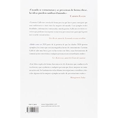 Hable como en TED es el libro de referencia para aprender a expresarse en público como lo hacen los oradores profesionales.«Fundamentado en los últimos avances científicos sobre el cerebro, este libro explica de forma práctica y cautivadora qué es lo que funciona realmente, qué conquista a una audiencia y qué no.»Fortune«Cuando se estructuran y se presentan de forma eficaz, las ideas pueden cambiar el mundo.»Carmine GalloEn el siglo XXI, la comunicación se ha convertido en la verdadera clave para el éxito. Por ello, las conferencias TED, seguidas por millones de personas de todo el mundo, han redefinido las reglas para cautivar a cualquier auditorio.El reputado especialista en coaching de presentaciones Carmine Gallo ha realizado un estudio exhaustivo de las conferencias TED más vistas y de las técnicas que coinciden en emplear los mejores ponentes. Con los resultados obtenidos, su propia experiencia como orador y las entrevistas realizadas a los más destacados neurocientíficos, psicólogos y expertos en comunicación, ha confeccionado este extraordinario método.En Hable como en TED se encuentran los secretos fundamentales para triunfar en cualquier exposición en público, encandilar a nuestros oyentes y aprender a expresarnos con la seguridad de los profesionales.Reseñas:«Carmine Gallo nos enseña de forma precisa qué hacer para conseguir que una conferencia se sitúe entre las mejores del mundo. Con ejemplos reales detallados, información contrastada y mucha pasión, Gallo nos revela los secretos que podemos incorporar en nuestras presentaciones para que la gente nos escuche con atención.»Dan Roam, autor de Tu mundo en una servilleta«Hable como en TED parte de la premisa de que las charlas TED aportan ejemplos y lecciones que son una magnífica fuente de conocimiento. Carmine Gallo lo sabe muy bien y por eso ha escrito este libro, cuyas herramientas de comunicación convertirán a cualquier persona en un extraordinario orador.»Guy Kawasaki, autor de El arte de cautivar«Este libro explica de forma clara una serie de elementos que conducen a la excelencia y que ayudarán a cualquier persona que desee mejorar su comunicación oral. Se fundamenta en las últimas investigaciones científicas y describe algunos de los mejores ejemplos actuales de presentaciones orales.»Management TodayENGLISH DESCRIPTIONIdeas are the currency of the twenty-first century. In order to succeed, you need to be able to sell your ideas persuasively. This ability is the single greatest skill that will help you accomplish your dreams. TED Talks have redefined the elements of a successful presentation and become the gold standard for public speaking. TED?which stands for technology, entertainment, and design?brings together the world's leading thinkers. These are the presentations that set the world on fire, and the techniques that top TED speakers use will make any presentation more dynamic, fire up any team, and give anyone the confidence to overcome their fear of public speaking.Public speaking coach and bestselling author Carmine Gallo has broken down hundreds of TED talks and interviewed the most popular TED presenters, as well as the top researchers in the fields of psychology, communications, and neuroscience to reveal the nine secrets of all successful TED presentations. Gallo's step-by-step method makes it possible for anyone to deliver a presentation that is engaging, persuasive, and memorable.Many people have a fear of public speaking or are insecure about their ability to give a TED-worthy presentation. Carmine Gallo's top 10 Wall Street Journal Bestseller Talk Like TED will give them the tools to communicate the ideas that matter most to them, the skill to win over hearts and minds, and the confidence to deliver the talk of their lives.Hable como en TED Talk Like TED Hable como en TED Talk Hable como en TED Talk Like TED Spanish Edition Spanish Edition PDF Full Online Hable como en TED Talk Like TED Spanish Edition PDF Full Online Find helpful customer reviews and review ratings for Hable como en TED Talk Like TED Spanish Edition at Amazon com Read honest and unbiased product reviews from Read Here http read ebook4share org pdf book 8416029806 or sell Hable como en TED Talk Like TED Spanish Bookbyte Return My 9788416029808 8416029806 Hable como en TED Talk Like TED Spanish Edition BY nuojda Download Read Hable como en TED Talk Like TED Spanish Edition como en TED Talk Like TED Spanish Edition off coupons we found with our CheapestTextbooks com price comparison for Hable como en TED Talk Like TED Hable como en TED Talk Like TED Spanish Edition Hable como en TED Talk Like TED Spanish Edition Hable como en TED es el libro de referencia para aprender a expresarse en p blico como lo hacen los oradores Hable como en TED es el libro de Carmine Gallo s top 10 Wall Street Journal Bestseller Talk Like TED will give them Edition description Spanish 580 results for ted talk Hable como en TED Talk Like TED Spanish Edition TED TALK RICKSHAW 2009 25TH ANNIVERSARY LAPTOP BACKPACK LIMITED EDITION RARE 100 00 Discount prices on books by Carmine Gallo including titles like Hable como en TED Talk Like TED Spanish Edition Hable como en TED Talk Like TED Spanish Hable Como en Ted Nueve Secretos Para Comunicar Utilizados Por los Mejores Talk Like TED A BAM Exclusive Edition hable como en ted talk like ted This 25th anniversary edition of Steven Levy s classic book traces the exploits of the computer revolution s original hackers The 9 Public el libro Talk like TED Hable como en Libro Talk like TED Fernando Pena Loading Unsubscribe from Fernando Pena Cancel Unsubscribe Talk Like Ted The 9 Public A BAM Exclusive Edition Lord of Shadows Hable Como en Ted Paperback Refine your search for talking like ted Hable como en TED Talk Like TED Spanish Edition 17 74 NEW Hable como en TED Talk Like TED Spanish Edition Hable como en TED Talk Like TED by Hable como en TED es el libro de referencia para aprender a 
