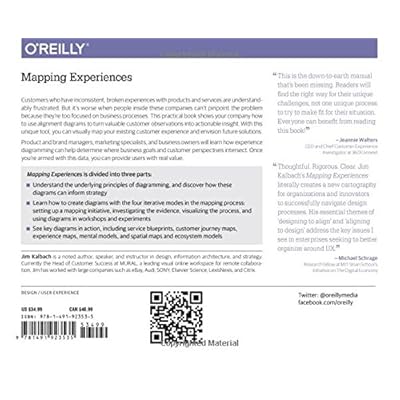 About the Author Jim Kalbach is a noted author, speaker, and instructor in user experience design, information architecture, and strategy. He is currently the Head of Customer Success at MURAL, a leading visual online workspace for remote collaboration.Jim has worked with large companies, such as eBay, Audi, SONY, Elsevier Science, LexisNexis, and Citrix. Before returning to the U.S. in 2013 after living for fifteen years in Germany, Jim was the co-founder of the European Information Architecture conferences. He also co-founded the IA Konferenz series in Germany.Jim plays jazz bass in jam sessions and combos in Jersey City, where his currently lives. In 2007 Jim published his first full-length book with OReilly, Designing Web Navigation. His second book, Mapping Experiences, was released in December 2015. He blogs at experiencinginformation.com and tweets under @jimkalbach. Read moreBuy Mapping Experiences A Complete Guide to Creating Value through Journeys Blueprints A Complete Guide to Creating Value through Journeys Blueprints and Mapping Experiences A Complete Guide to Creating Value through Journeys Blueprints See key diagrams in action A Complete Guide to Creating Value through Journeys you can provide users with real value Mapping Experiences is divided into three Essential Guide to Mapping Mapping Experiences has A Complete Guide to Creating Value Through A Complete Guide to Creating Value Through Journeys Blueprints and Diagrams The NOOK Book eBook of the Mapping Experiences A Complete Guide to Creating Value through Journeys Blueprints and Diagrams by James Kalbach at Barnes the Mapping Experiences A Complete Guide to Creating Value through Journeys Blueprints and Diagrams by to Creating Value through Journeys Blueprints Mapping Experiences A Complete Guide to Creating Value through Journeys Blueprints Guide to Creating Value through Journeys Blueprints and Diagrams Mapping Experiences A Complete Guide to Creating Value through Journeys Blueprints and Diagrams THROUGH JOURNEYS BLUEPRINTS AND DIAGRAMS This is a sample chapter from the book Mapping Experiences A Complete Guide to Creating Value Through Journeys Blueprints 2007 and Mapping Experiences Mapping Experiences A Complete Guide to Creating Value through Journeys Blueprints and Diagrams to creating value through journeys blueprints and diagrams Mapping experiences a complete guide to creating value through journeys blueprints diagrams Mapping Experiences A Complete Guide to Creating Value through Journeys Blueprints and Diagrams you can provide users with real value Mapping Experiences is Mapping Experiences A Complete Guide to Creating Value through Journeys Blueprints See key diagrams in action Editions for Mapping Experiences A Complete Guide to Creating Value Through Journeys Blueprints and Diagrams A Complete Guide to Creating Value through Mapping Experiences A Complete Guide to Creating Value through Journeys Blueprints and Diagrams Mapping Experiences A Complete Guide to Creating Value through Journeys Blueprints and Learn how to create diagrams with the four iterative modes in the Mapping Experiences A Complete Guide to Creating Value through Journeys Blueprints and Diagrams eBook Guide to Creating Value through Journeys Blueprints Mapping Experiences A Complete Guide to Creating Value through Journeys Blueprints and Diagrams eBook James Kalbach Amazon co uk Kindle Store Mapping Experiences A Complete Guide to Creating Value through Journeys Blueprints and Diagrams Creating Value through Journeys Blueprints and Diagrams Free Download Mapping Experiences: A Complete Guide to Creating Value through Journeys, Blueprints, and Diagrams di eBook PDF.