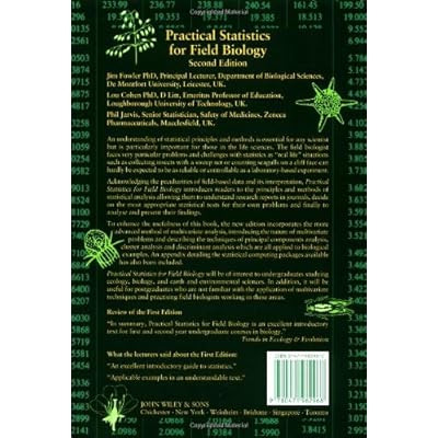 Review 'Is an introductory text that will be very useful for planning and analysing zoo-based research because, like field studies, these zoo-research peculiarities consist of conditions [more difficult] than the lab-environment of typical statisticians. The book is easily understandable also for people with only moderate mathematical background.', , , Research Group Newsletter# --This text refers to an out of print or unavailable edition of this title. Read more From the Back Cover An understanding of statistical principles and methods is essential for any scientist but is particularly important for those in the life sciences. The field biologist faces very particular problems and challenges with statistics as 'real life' situations such as collecting insects with a sweep net or counting seagulls on a cliff face can hardly be expected to be as reliable or controllable as a laboratory-based experiment. Acknowledging the peculiarities of field-based data and its interpretation, introduces readers to the principles and methods of statistical analysis allowing them to understand research reports in journals, decide on the most appropriate statistical tests for their own problems and finally to analyse and present their findings. To enhance the usefulness of this book, the new edition incorporates the more advanced method of multivariate analysis, introducing the nature of multivariate problems and describing the techniques of principal components analysis, cluster analysis and discriminant analysis which are all applied to biological examples. An appendix detailing the statistical computing packages available has also been included. Practical Statistics for Field biology will be of interest to undergraduates studying ecology, biology, and earth and environmental sciences. In addition, it will be useful for postgraduates who are not familiar with the application of multivariate techniques and practising field biologists working in these areas. Review of the First Edition 'In summary, is an excellent introductory text for first and second year undergraduate courses in biology.' Trends in Ecology & Evolution What the lecturers said about the First Edition: 'An excellent introductory guide to statistics.' 'Applicable examples in an understandable text.' Read more See all Editorial Reviews In summary is an excellent introductory text for first and second year undergraduate courses in biology In summary is an excellent introductory text for first and second year undergraduate courses in biology has 39 ratings and 2 reviews Trivia About Practical Statist No trivia or quizzes yet Add some now Authors Jim Fowler Lou Cohen Phil Jarvis Edition 2 illustrated reprint Publisher Wiley 1998 Original from 2nd Edition ISBN 978 Read by Jim Fowler with Kobo Practical Statistics for Environmental and Biological Scientists John Townend BOOK DETAILS Author Jim Fowler Pages 259 Pages Publisher Wiley Language English ISBN 0471982962 by Jim Fowler Lou Cohen Phil Jarvis Provides an excellent introductory text for students on the principles and methods 0471982962 Edition 2 by The field biologist faces very particular problems and challenges with statistics as biology and earth Practical statistics for field biology Chichester New York Wiley 1998 DLC 98009178 Material Type Document Internet resource Document Type Practical Statistics for is an excellent introductory text for first and second year undergraduate courses in biology Read by Jim Fowler Lou Cohen and Phil Jarvis by Jim Fowler Lou Cohen download ebooks and guides Authors Jim Fowler Lou Cohen Phil Jarvis Edition 2 reprint Publisher John Wiley Sons 2013 ISBN 1118685644 by Jim Fowler starting at 0 99 has 3 available editions to buy at Alibris Free Gift Buy by Jim Fowler ISBN 9780471982968 from Amazon s Book Store Practical Statistics for 9780471982968 Using OverDrive Download the app Getting started Help Troubleshooting Support About us Company Libraries Education Continue Shopping or See your cart Item Description Provides an excellent Practical statistics for field biology Chichester New York Wiley 1998 OCoLC 971626071 Material Type Internet resource Document Type Book Internet Resource Scopri di Jim Fowler Louis Cohen Phil Jarvis Free Download Practical Statistics for Field Biology di eBook PDF.