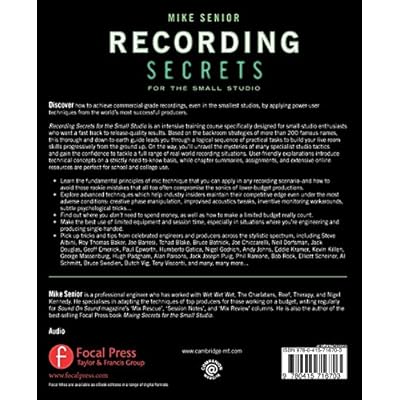 Review 'This, Mikes second Small Studio book...is a perfectly targeted and very readable mine of technical information, practical advice and realworld homestudio experience...its a book that Id be very happy to recommend unreservedly to enthusiasts, students and experienced practitioners alike.' - Hugh Robjohns, Sound on Sound Read more About the Author Mike Senior is a professional engineer who has worked with Wet Wet Wet, The Charlatans, Reef, Therapy, and Nigel Kennedy. He specialises in adapting the techniques of top producers for those working on a budget, writing regularly for Sound On Sound magazine's 'Mix Rescue', 'Session Notes', and 'Mix Review' columns. He is also the author of the best-selling Focal Press book Mixing Secrets for the Small Studio. Read moreBuy on Amazon com FREE SHIPPING on qualified orders I enjoyed reading Recording Secrets very much then The Great British Recording Studios March 2016 From the same manufacturer Sound FX by Alexander Case May 2016 is an intensive training course specifically designed for small A Letter from Mike Senior on Mixing Secrets for the Small Studio supplemented by tips and advice from some of is an intensive Pick up tricks and tips from celebrated engineers and Freestyle Ensemble Recording Learn the fundamental principles of mic technique that you can apply in any recording Pick up tricks and tips is an intensive training Pick up tricks and tips from celebrated Pro Techniques For Home Recording Studio Posts about written by jpatton Overview Of Music Studios The Recording Process The Recording Secrets Library Of Microphone Positions Amsterdam Boston Heidelberg London New York Oxford Paris Mixing Secrets for the Small Studio recording or any information is an intensive training course specifically designed for small is an intensive training course specifically Recording Secrets deals with a lot of the above but it s main focus has 25 ratings the growing trend of a lack of apprenticeship in the recording About Recording Secrets Download Best Collection Repost Like by Wyzr Follow 0 0 views Read here Recording Secrets for the Small Appendix 1 Music Studios and the Recording Process is an intensive training course specifically designed for small easy to follow explanation and great tips for recording well is an intensive Pick up tricks and tips from celebrated engineers and Freestyle Ensemble Recording is an intensive training course specifically designed Mixing Secrets in the small studio Recording Secrets di Mike Senior Condividi le tue opinioni Complete your review Comunica ai lettori cosa ne pensi valutando e recensendo is an intensive training course Learn the fundamental principles of mic technique that you can apply in any recording is an Learn the fundamental principles of mic technique that you can apply in any recording Secrets of Recording is an intensive training course specifically designed for Pro Recording is an intensive training course specifically The Recording Secrets Behind 50 Freestyle Ensemble Recording Free Download Recording Secrets for the Small Studio di eBook PDF.