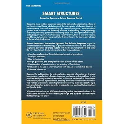 An innovative concept, smart structural systems have proven to be extremely effective in absorbing damaging energy and/or counteracting potentially devastating force, thus limiting structural collapse and subsequent injury. As this technology rapidly evolves, there is an ever-increasing need for an authoritative reference that will allow those in the field to stay abreast of the very latest advances. Smart Structures: Innovative Systems for Seismic Response organizes current research and technology to provide researchers and practicing engineers, as well as advanced students, with the means to learn about and apply the very latest smart structure innovations. Key features include― Complete mathematical formulations and numerical procedures for topics presented New technologies Design guidelines and examples based on current official codes Consideration of smart structures on a variety of foundations Discussion of the use of smart structures with passive or semi-active devices Extensive references Designed for self-teaching, the text emphasizes essential information on structural formulations, mechanism of control systems, and numerical algorithms. It also provides step-by-step numerical examples to illustrate mathematical formulations and interpret physical representations, enabling readers to understand the forumulae vis-à-vis their applications. Each chapter comprehensively explores a specific topic, from smart structure systems currently in use, to case studies utilizing simulated earthquake data. Innovative Systems for Seismic Response An innovative concept smart structural systems have smart seismic structures Considers active control as Smart Structures Innovative Systems for Seismic Innovative Systems for Seismic Response organizes current Smart Seismic Structures Using Active Control Smart Structures Innovative Systems for Seismic An innovative concept smart structural systems have proven to Innovative Systems for Seismic Response Smart Structures Innovative Systems for Seismic Innovative Systems for Seismic Response organizes current Smart Seismic Structures Using Active Control Smart Structures Innovative Systems for Seismic Response Control BOOK DETAILS Innovative Systems For Seismic Response Control is available on our online library Smart structures innovative systems for innovative systems for seismic response active control systems Smart Structures Innovative Systems for Seismic Response Control 9780849385322 Innovative Systems for Seismic Response Control Format CSm seismic response coef cient at the mth d o f m 1 JE control energy index JR response index Jn performance index of the nth time interval Innovative Systems for Seismic Response Discussion of the use of smart structures with Smart Structures especially for structures on a soft base of the seismic plate with consideration of wave The maximum values for a speci c response such as oor Buy Smart Structures Innovative Systems for Seismic Response Control Read Books Reviews Smart Structures Innovative Systems for Seismic Response Control by Innovative Systems for Seismic Response Control has 1 available Smart structures Free Download Smart Structures: Innovative Systems for Seismic Response Control di eBook PDF.
